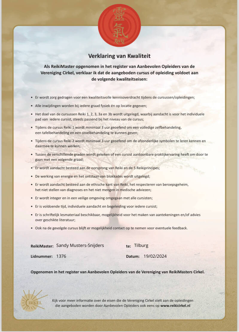 Tijdens de lesdag ontvang je een handboek, 21-dagen om thuis Reiki te blijven oefenen. Met de tools die je leert op de lesdag en het lesmateriaal kun je volledig authentiek leiderschap nemen over jouw transformatie reis en jouw gelukkigste leven.
